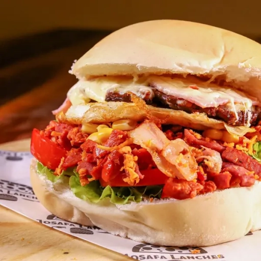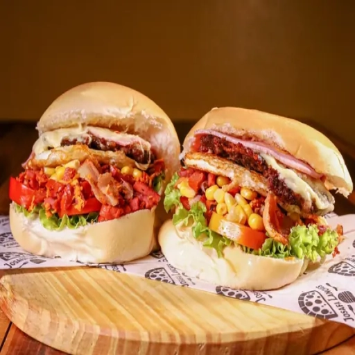 2 sanduíches completos com pão bola, carne, frango, bacon, queijo, presunto, salsicha, ovo, calabresa, milho, alface e... Ver completo