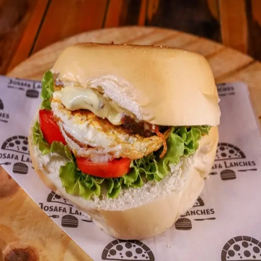 Pão bola, carne, ovo, queijo, alface e tomate.
