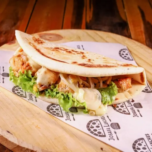 Pão bola, carne, bacon, frango, calabresa, salsicha, queijo, alface e tomate.