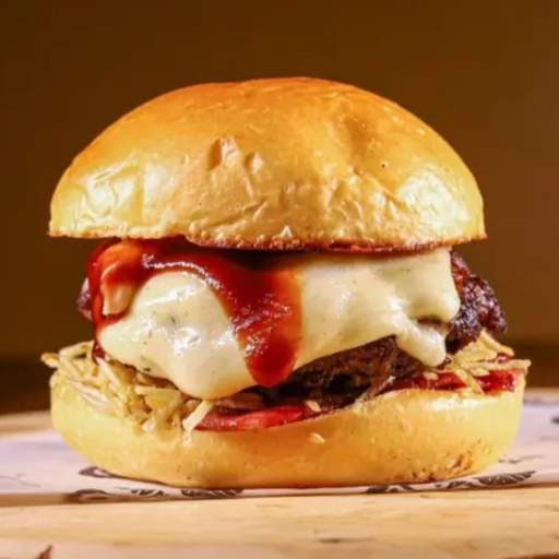 Pão brioche, carne 130g, calabresa em rodelas, molho barbecue, queijo, alface, batata palha, cebola e molho especial.
